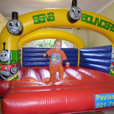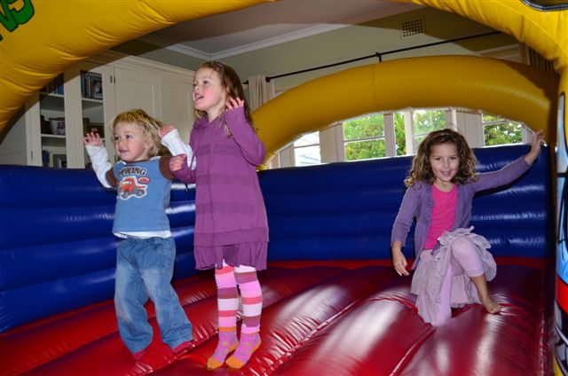 castle, a Thomas cake and a bunch of his buddies. With Dylan’s birthday in July we are always going to have to plan parties around the weather. This year we were lucky to find a jumping castle small enough to fit in the play room should it rain and rain it did. Some of the older children couldn’t believe there eyes when they walked down the passage and found a “bouncy house’ in the house!