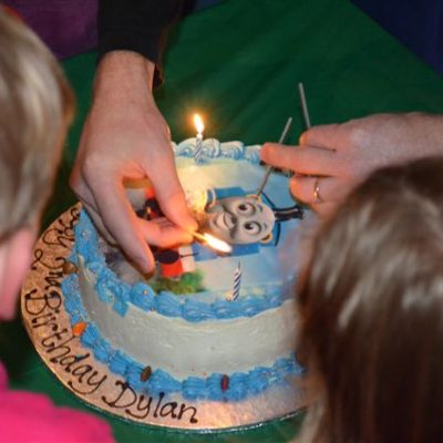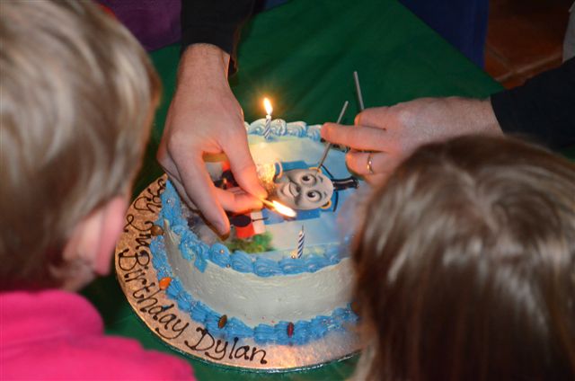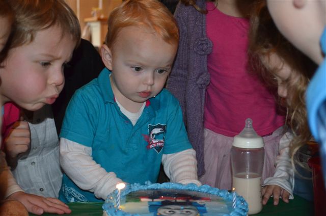 As with all children’s parties there has to be a theme and a cake to suit the theme. This party was no different and Ali organized an awesome Thomas cake. Dylan had been practicing blowing out candles (matches) for the past month but got stage fright