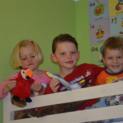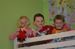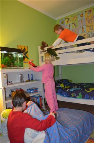Luke and Helen slept in Warrick’s room which was a real treat for him. Luke slept on the Snooza and Helen on Warrick’s lower bunk. Warrick lent them each a soft toy for the night. I was quite amazed to see Warrick give up “Snappy” the crocodile to Helen so easily. Ali read them all a story and says she was quite impressed with the attention the cousins paid. She either has a knack for reading interesting bedtime stories or it was one they had never heard before.