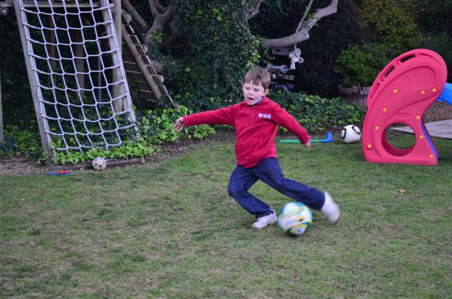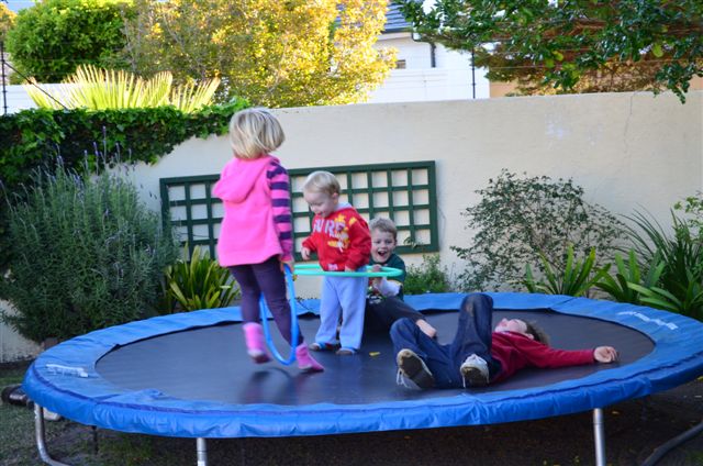 They arrived on Thursday afternoon and had great fun jumping on the trampoline and playing soccer. Luke has quite a left boot on him! He set about pruning the shrubs with the odd wayward shot! I thought it best if I play goalie and save the Clivias where possible.