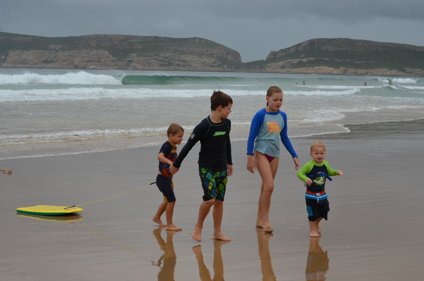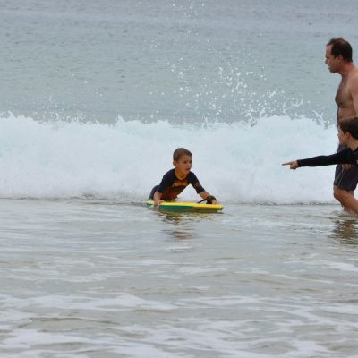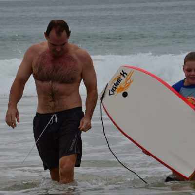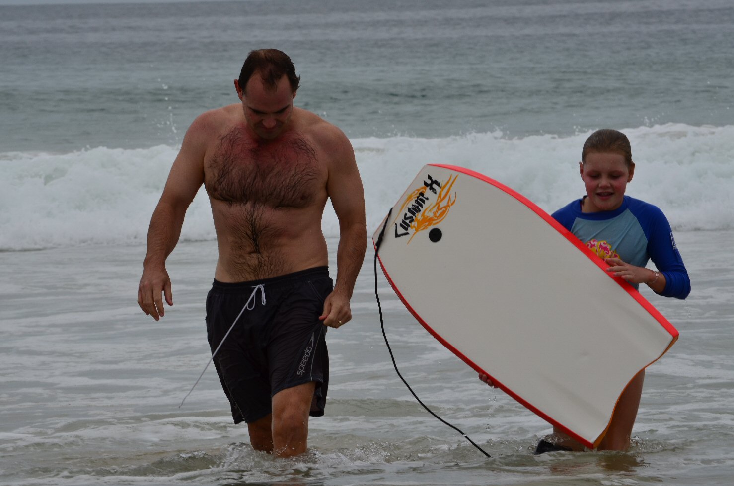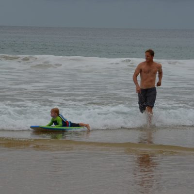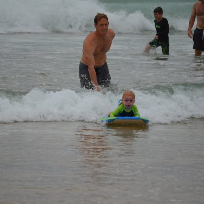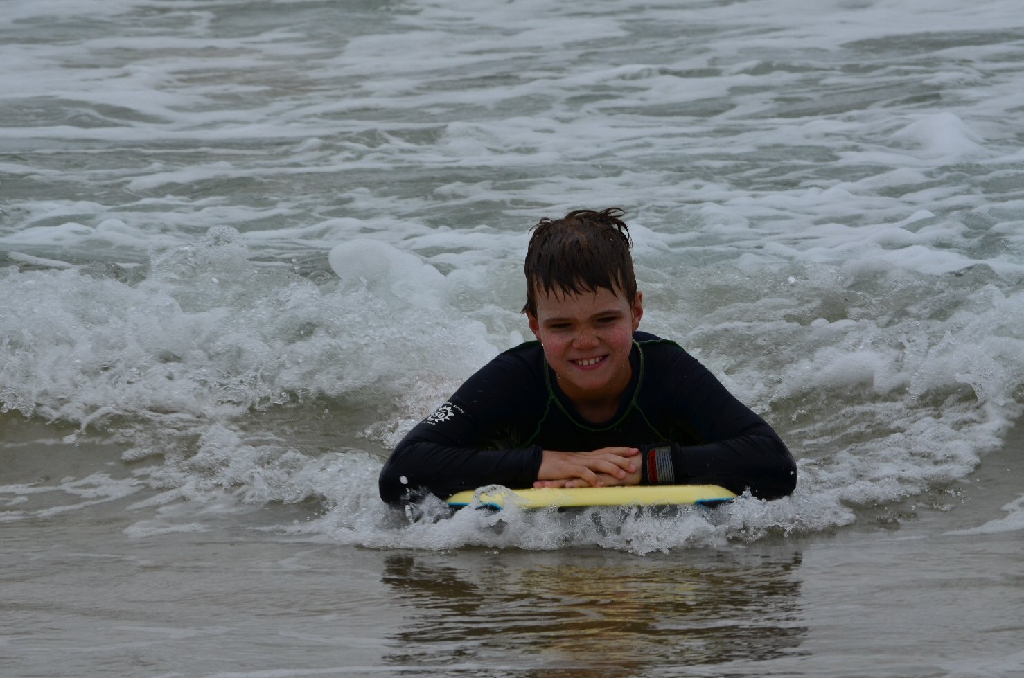 Dylan amazed us all with his courage in the surf. I pushed him into countless foamies on my old body board. He would go straight for a while but eventually turn sideways, catch a rail and tumble over. This happened quite a bit but every time he came up laughing.
