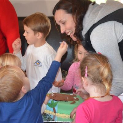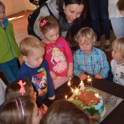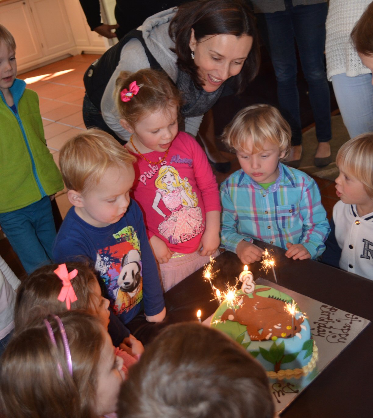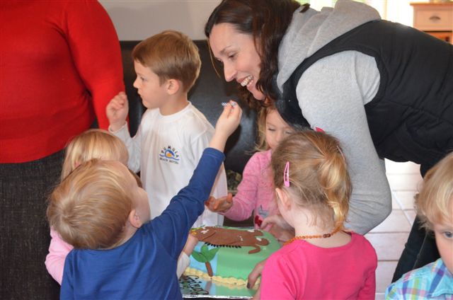 We celebrated Dylan’s 3rd birthday on a warm winter Friday morning with Granny Mac and a few of his friends from school. Ali organized a puppet show, cupcake decorating and a lovely Gruffalo cake.