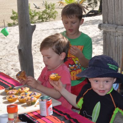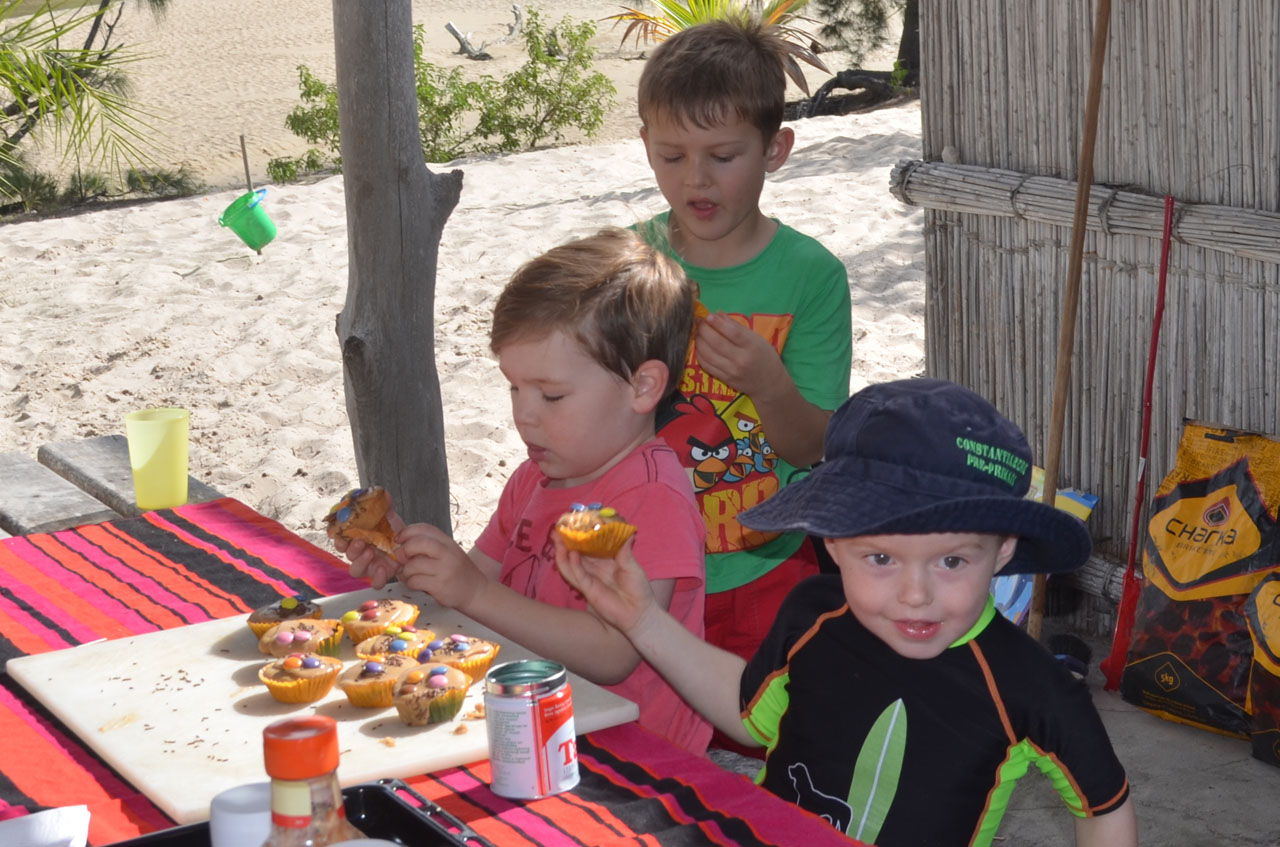 Ali and Sonja made some caramel cupcakes with smarties as his birthday treat.  In the afternoon we took the boat out for the first time.  We crossed the lagoon and spent the rest of the day on the beach.