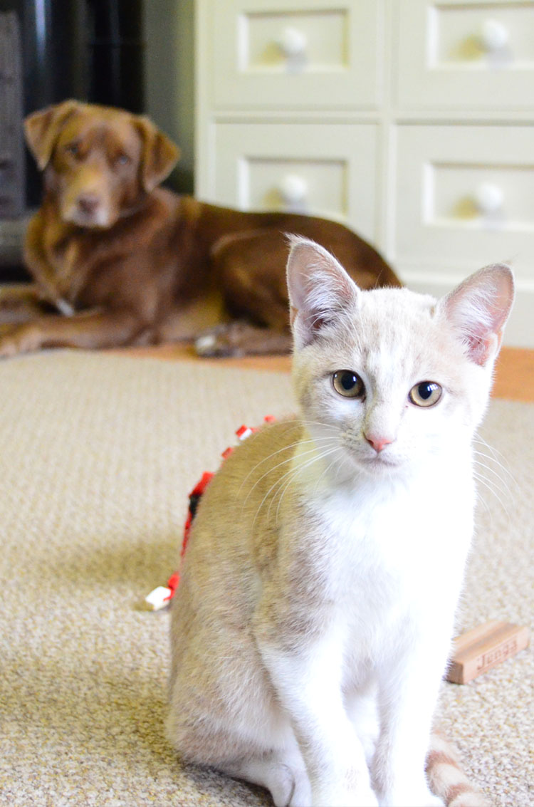 Oscar (Warrick named him) passed our little personality test with flying colours. He is a fawn and white moggie about 14 weeks old. A moggie is a no name brand which are apparently tougher and have more character. He certainly is a brave little cat. He is very friendly and hasn’t stopped purring since we got him. In fact I have never know a cat to purr this much. Once we decided to take him we discovered that there were a few hoops to jump through. Boris would need to come in for an assessment and then they would send someone out to the house for a home inspection. There was also the matter of a R100 application fee/donation and questionnaire. Once they deemed us suitable owners we were then required to pay an additional R630 but this fee will cover all future inoculations and pet sterilization. I took two very excited boys to collect him on Wednesday.